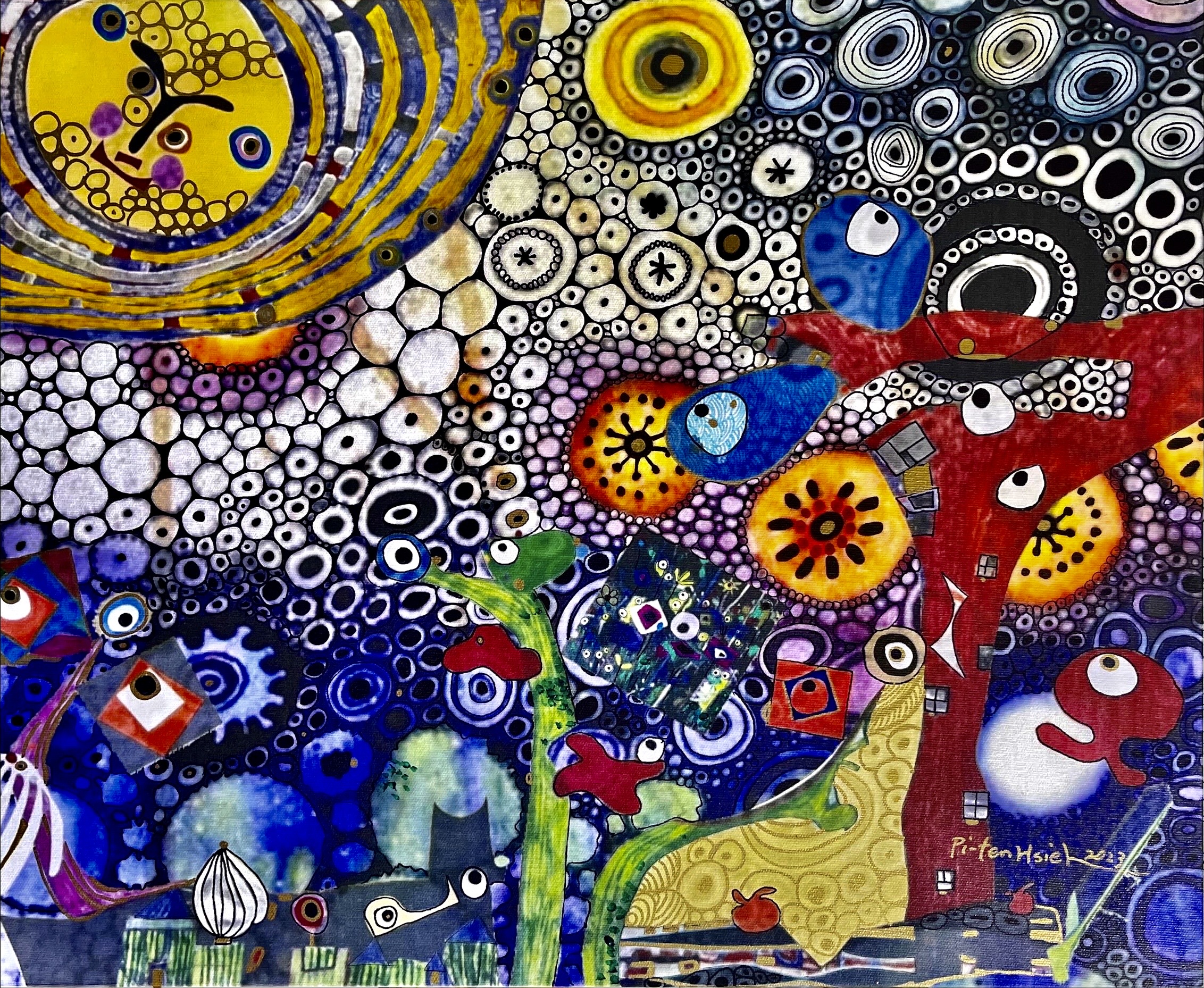 以自然意象與永續思維為核心,運用拼貼與複合媒材呈現自然能量的流動與生命肌理。藝術家透過回收素材與手感創作,將環境意識轉化為詩意畫面,帶領觀者在藝術中重新思考人與土地的連結,歡迎一同來感受城市裡最柔韌的綠色藝術力量。