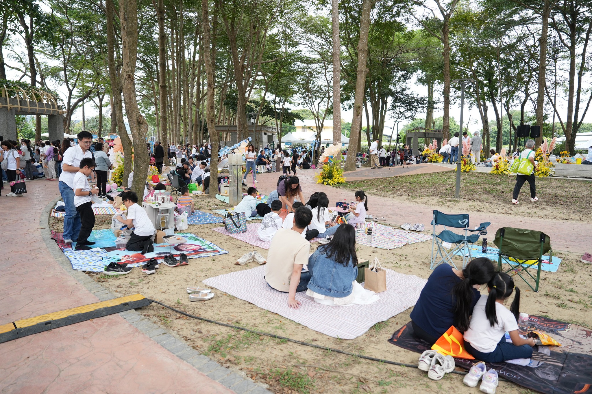 The 2025 Taichung Picnic Day kicked off today (November 2) across all 29 districts of the city. !n Xinshe district , the event was held lively at Fusheng Park, under the theme “Reading on the Lawn: Bring a Book to Picnic.” Combining the local natural scenery and the floral and agricultural specialties, the event invited the public to enjoy delicious snacks, participate in exciting tree-climbing experiences, and appreciate performances including dance, a wind music concert, and an extreme stunt show. Raffles with grand prizes were also held, offering everyone an opportunity to spend a delightful autumn day immersed in reading, art, and nature.