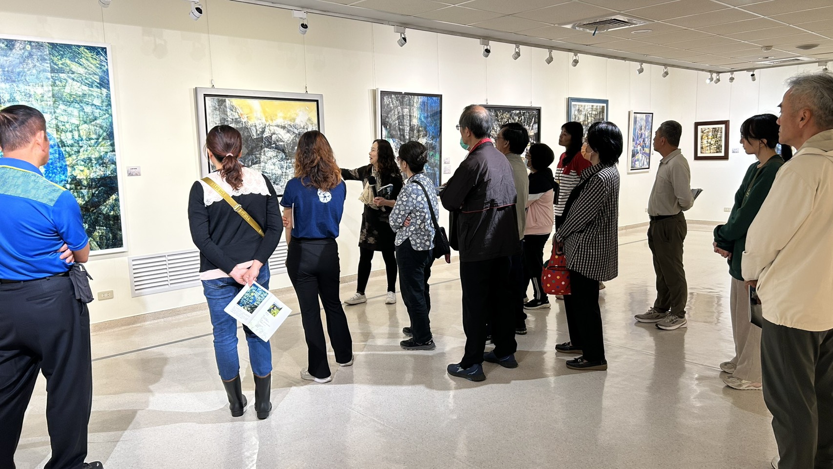 The Taichung City Huludun Cultural Center stated that Lai Jui-Chen was born in Hualien, where the green mountains, clear waters, and simple life of a farming family became the earliest nourishment for her artistic sensibility. During junior high school, she repeatedly copied tiger paintings by Lin Yu-shan, a master of Taiwanese gouache painting, laying a solid foundation for her painting skills. After nearly thirty years devoted to education, she retired and took up the brush once again, embarking on a creative journey of self dialogue. In this exhibition, Lai Jui-Chen 's works, including “Dawn” and “Impression of Nan’ao”, feature flowing layers of color and striking contrasts of light and shadow, revealing both the rhythms of nature and the emotional transformation of the artist’s life experiences.