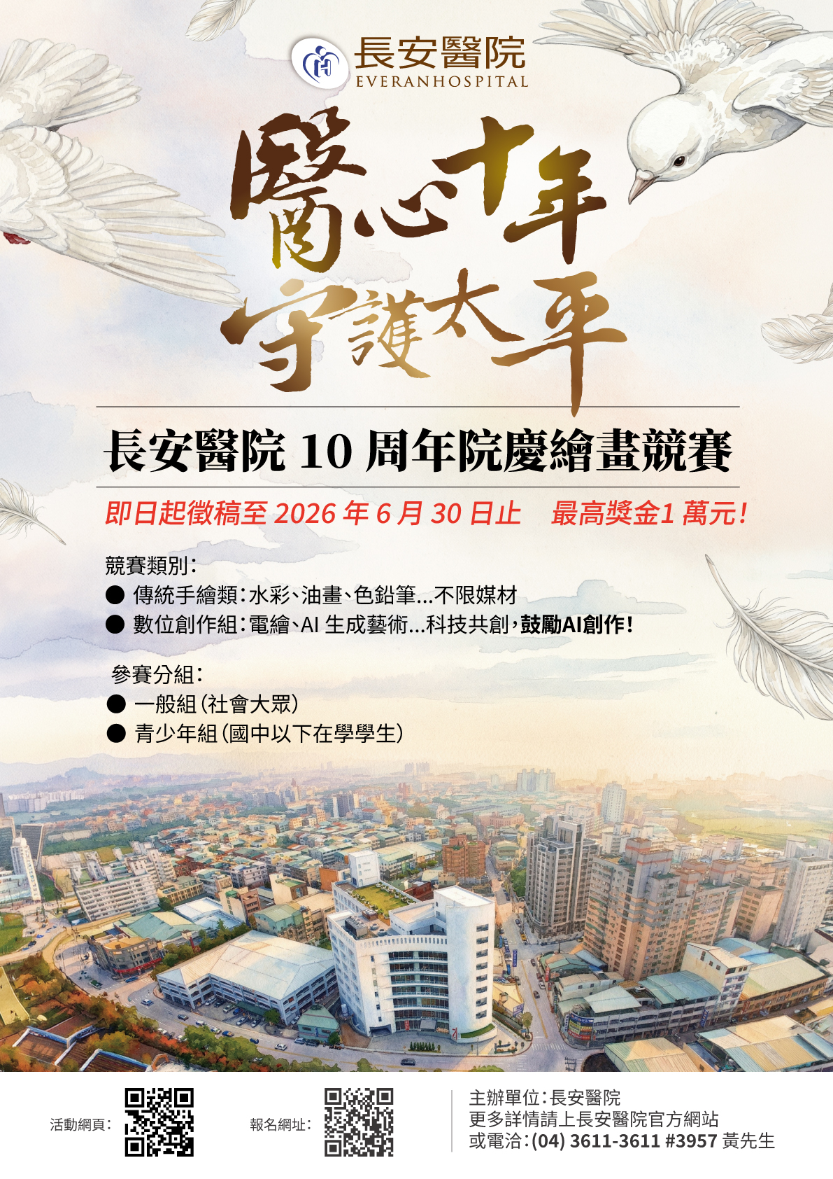 【轉知】長安醫院辦理「醫心十年,守護太平」10周年院慶繪畫競賽